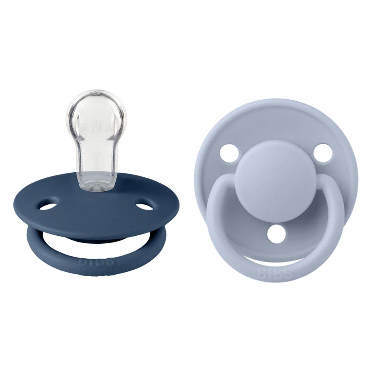 Bibs tolažilna duda - silikon De lux z okroglim cucljem 0-36 m 2/1 dusty blue/steel blue