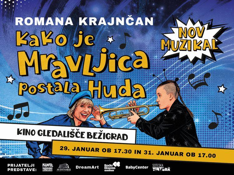 Romana Krajnčan, najbolj priljubljena slovenska ustvarjalka za otroke, se vrača na oder z novo čarobno glasbeno pustolovščino. Družinski muzikal Kako je Mravljica postala Huda nas popelje v igrivo glasbeno vesolje zavozlanih pesmic.