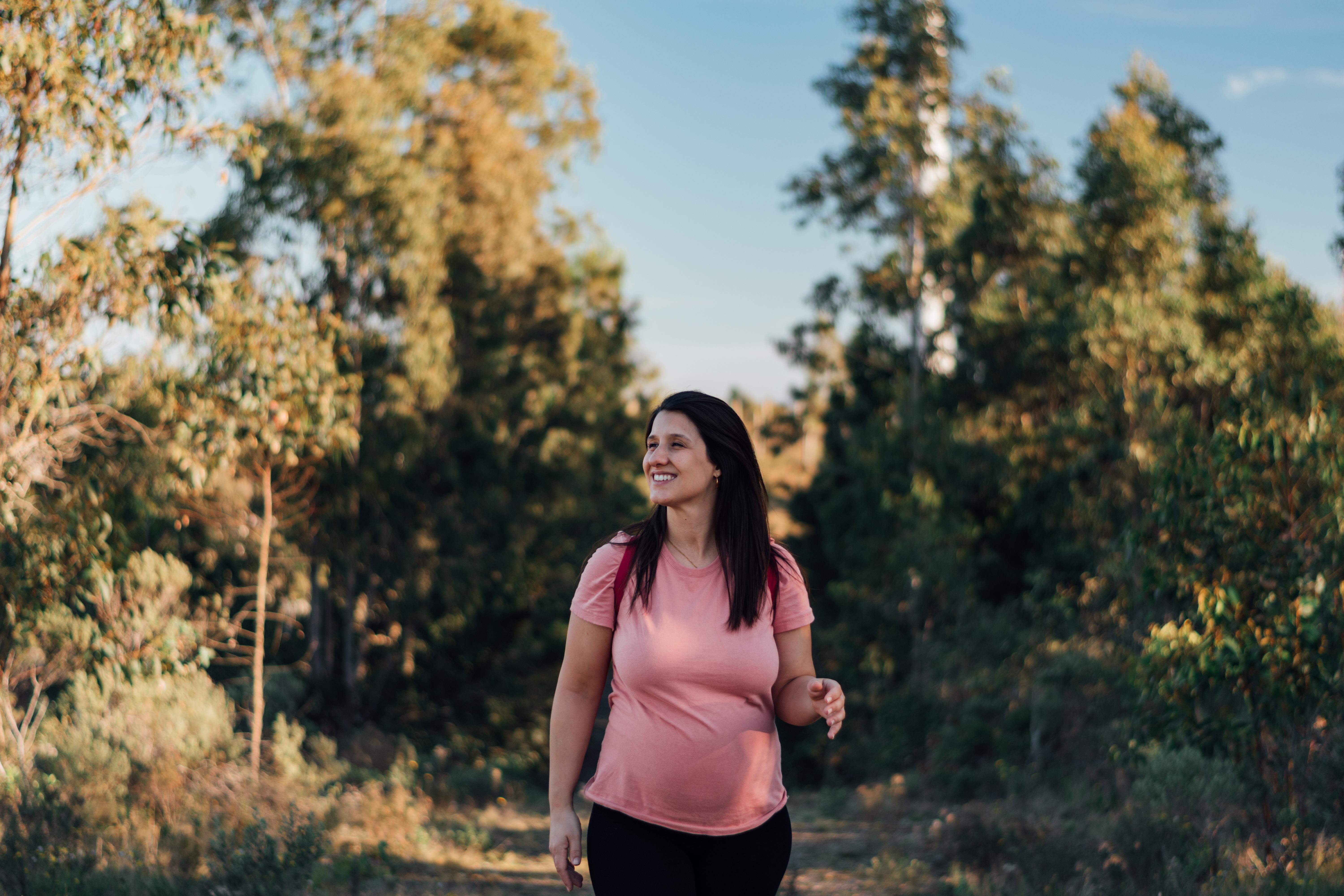 Hitrejši sprehod je preprosta in učinkovita aktivnost, ki jo lahko izvajaš vse do konca nosečnosti. Že 30 minut sprehoda 2–3 krat tedensko bo ohranilo tvoje telo v dobri kondiciji, ti pa boš na svežem zraku sprostila tudi misli.