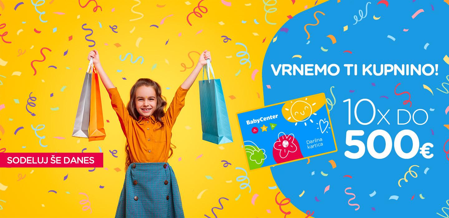 Med 21. 10. in 12. 11. 2024 opravi nakup kateregakoli izdelka v trgovinah Baby Center ali na spletni strani www.babycenter.si. Izpolni spletni obrazec za sodelovanje v nagradni igri. Ne pozabi vnesti pravilne številke računa. Z nekaj sreče lahko zadaneš vračilo kupnine v vrednosti do 500 €.* Nagrajence razglasimo 13. 11. 2024.