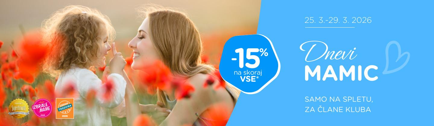 * V času od 25. 3. do 29. 3. 2026 lahko SAMO NA SPLETU nakupuješ skoraj vse izdelke po rednih cenah najmanj 15 % ugodneje, za člane kluba, ob nakupu nad 70 €.