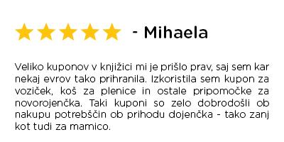 Pred tabo je knjižica z nasveti in izjemnimi kuponi ugodnosti za mamice in očke v pričakovanju. Popust lahko enostavno unovčiš z vpisom v klub v vseh naših poslovalnicah in v spletni trgovini.