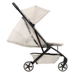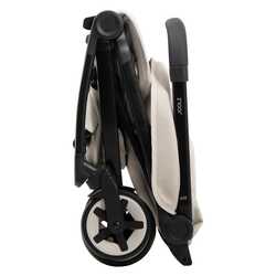 Večja sprednja kolesa in izboljšano vzmetenje na vseh štirih kolesih omogočajo udobno vožnjo tudi po neravnem terenu. Voziček se zloži v ultra kompakten format, primeren za kabinsko prtljago pri večini letalskih prevoznikov, poleg tega pa zložen samostojno stoji.
