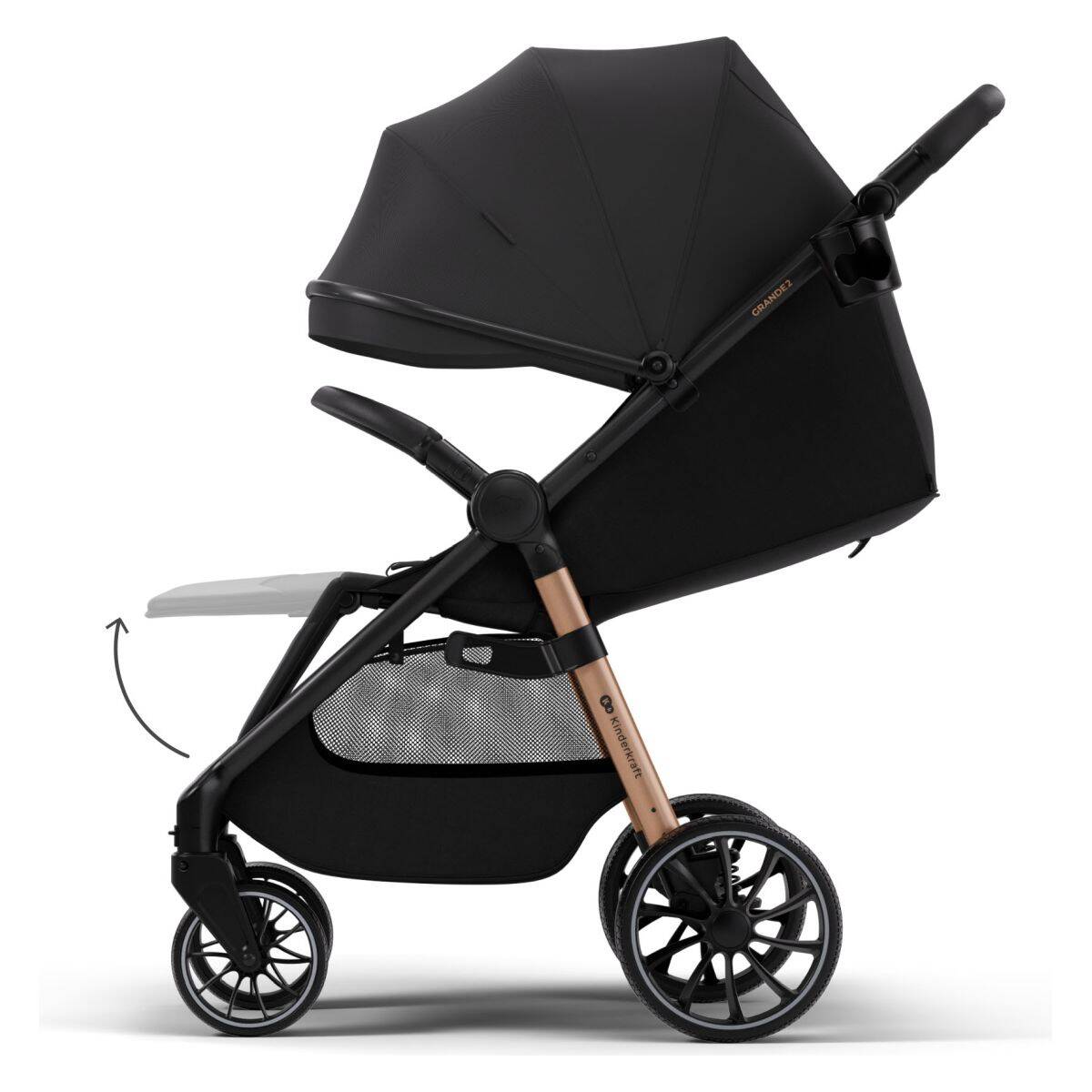 Kompakten mehanizem CLICK&FOLD omogoča zlaganje z eno roko, zato je GRANDE 2 popoln spremljevalec na poti – od sprehodov po parku do mestnih opravkov.