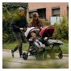 Prostoren sedež z gladko nastavitvijo naslona in opore za noge zagotavlja udobje otroka od zgodnjih mesecev do teže 22 kg, medtem ko nastavljiv ročaj v 3 stopnjah poskrbi za ergonomijo staršev.