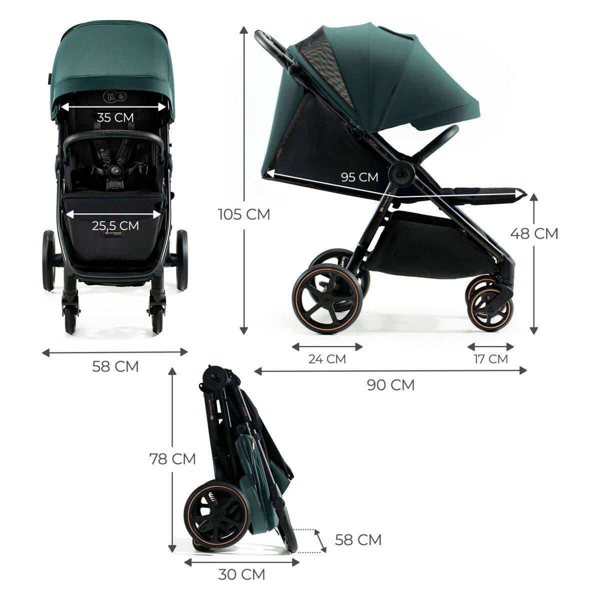 Dimenzije zloženega vozička z sedežno enoto (D x Š x V cm)
