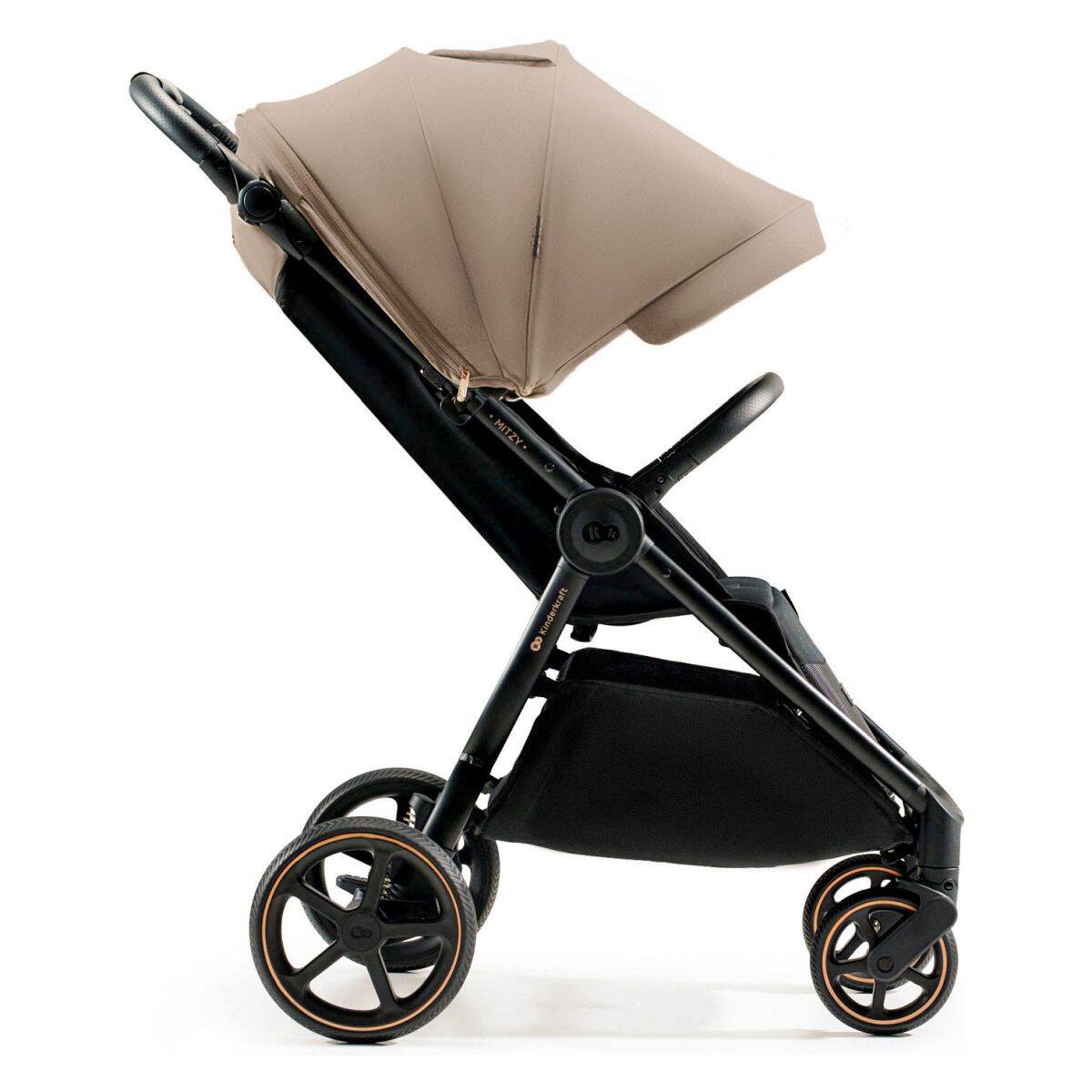 MITZY lahko v trenutku z eno roko zložite v kompaktne dimenzije in ga vzamete s seboj na pot. Voziček se prodaja z držalom za skodelico ter zložljivim komarnikom, ki ga je mogoče shraniti v oporo za noge. MITZY ima vse, kar potrebujete za sprehode in počitniške izlete.