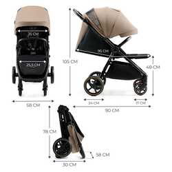 Ta sprehajalni voziček ima popolno amortizacijo na velikih, neprebojnih kolesih - v kombinaciji z mehkim sedežem in širokim razponom nastavitev naslonjala ter opore za noge bo ta voziček vašemu malčku zagotovil udobje tudi med vožnjo po tlakovanih površinah.
