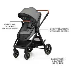 Podpora staršem: Postavljanje otroka v voziček še nikoli ni bilo tako preprosto. Preprosto malo dvignite vrtljivo varnostno pregrado, ojačani 5-točkovni varnostni pas pa omogoča hitro pripenjanje otroka. Pas lahko nastavite v enem trenutku in z eno roko. MITZY ima tudi veliko košaro z nosilnostjo do 5 kg, v katero lahko pospravite otroške pripomočke in večje nakupe.