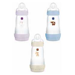 MAM Easy Start™ Anti-Colic je steklenička, zasnovana za dojenčke, ki potrebujejo čim bolj naravno, sproščeno in udobno hranjenje. Posebna anti-kolik tehnologija z ventilom v dnu omogoča enakomeren pretok, zmanjšuje požiranje zraka ter preprečuje nastajanje pene in mehurčkov.