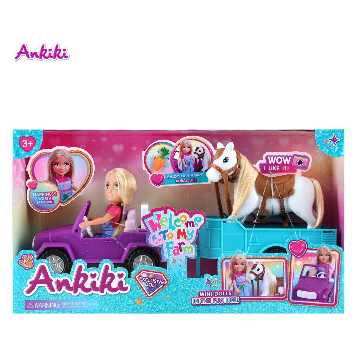 Masen Toys mala punčka s avtomobilom in konjičkom