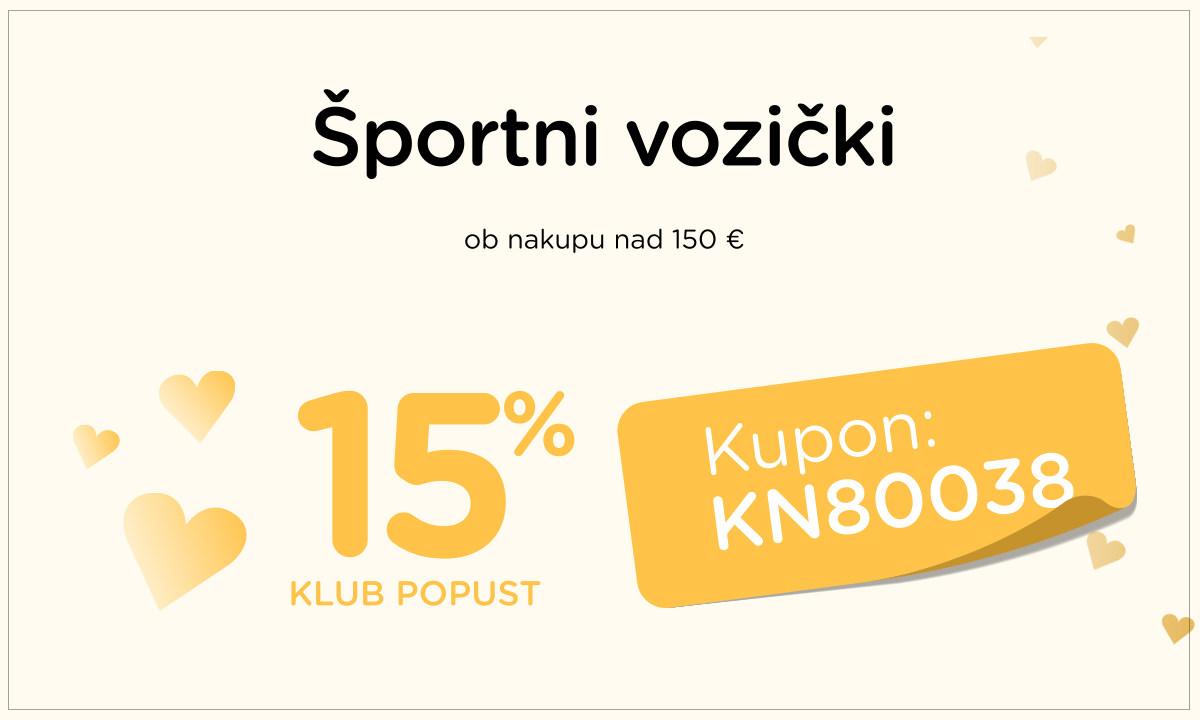 **KUPON: KN80038. Kodo kupona kopiraj in prilepi pod povzetkom košarice, v polje za vnos promocijskih kuponov, »Dodaj kupon«. Velja za člane kluba, ob nakupu nad 150 €, na redne cene, do 31. 8. 2026, za izdelke na zalogi in se obračuna v košarici. Kupon ni unovčljiv na izdelke Nuna, Britax Römer Lux kolekcijo in Cybex Platinum. Na izdelke blagovne znamke Cybex se prizna 10 % popust, Cybex Platinum izključen. Popusti, bonusi se ne seštevajo.