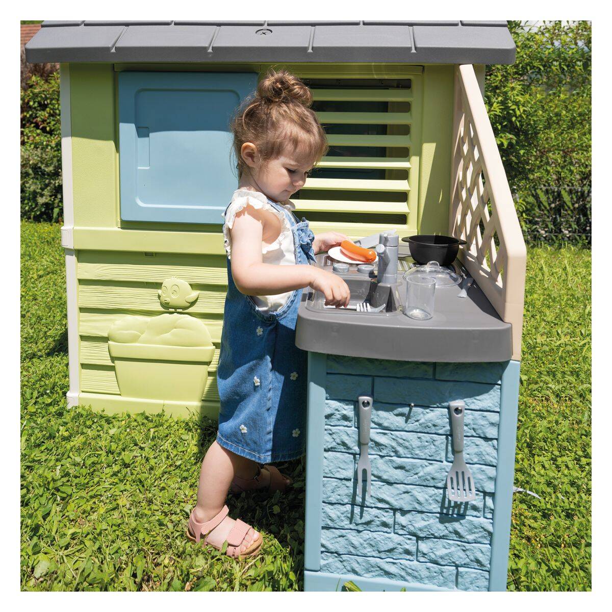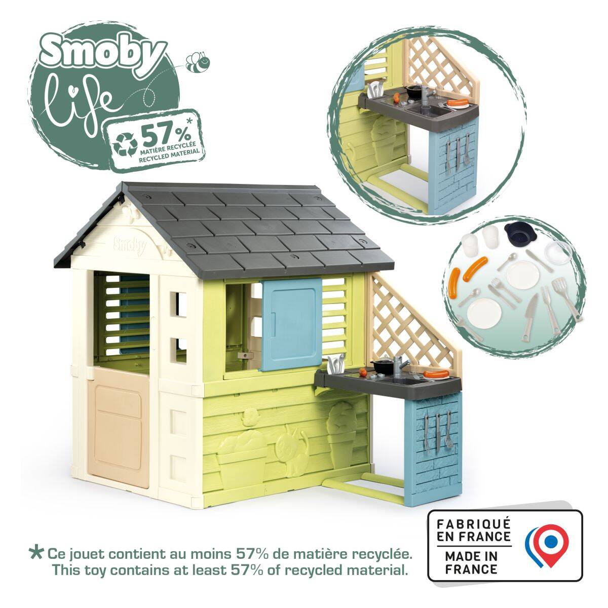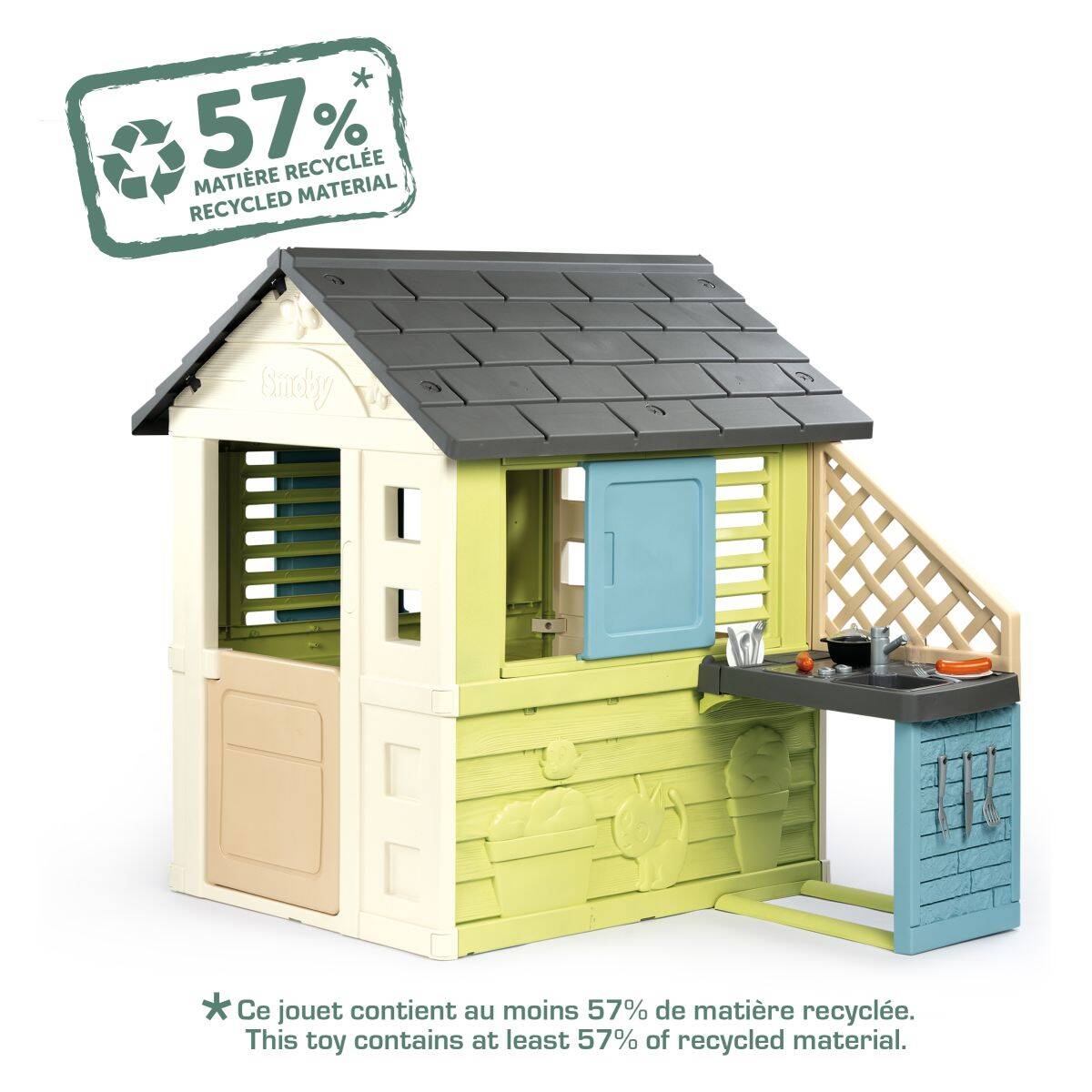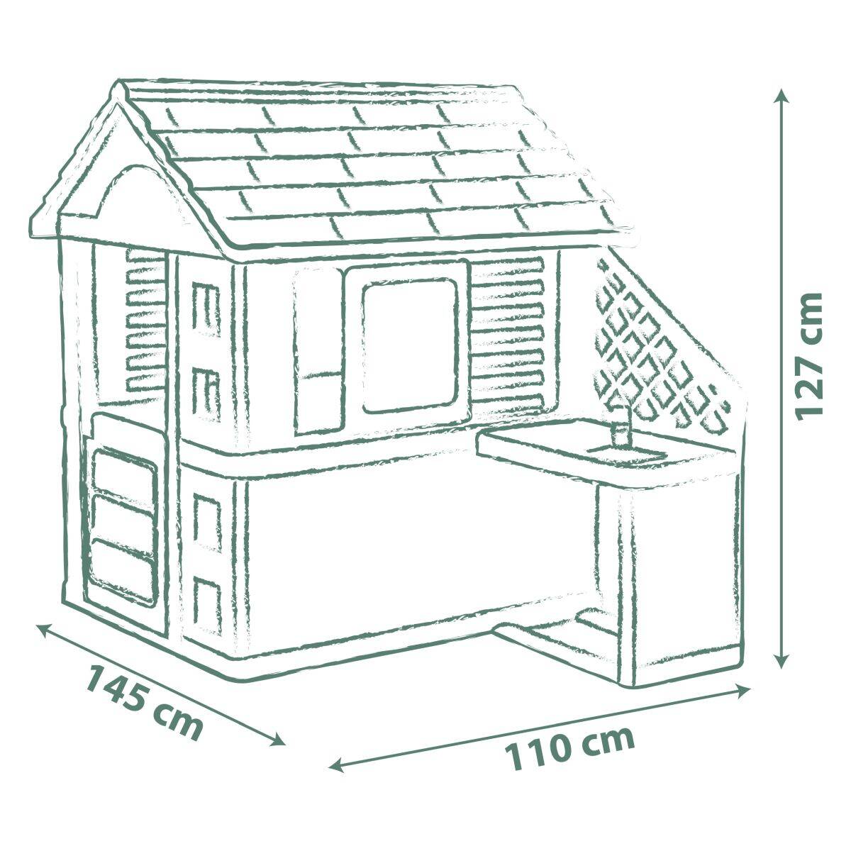 Smoby hišica Nature z kuhinjo-zelena,145 x 110 x 127 cm