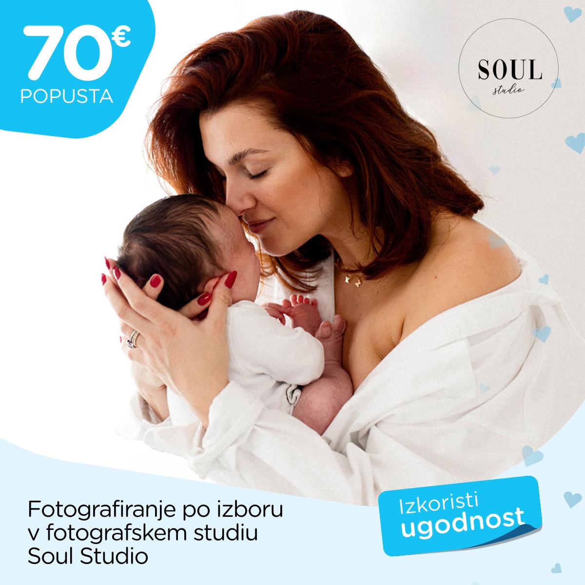 Kupon unovčite od 1. 3. 2025 do 31. 8. 2026 ob zakupu kateregakoli paketa fotografiranja. Kuponi niso združljivi, popusti se ne seštevajo. Za več informacij obiščite https://www.soulstudio.si/.