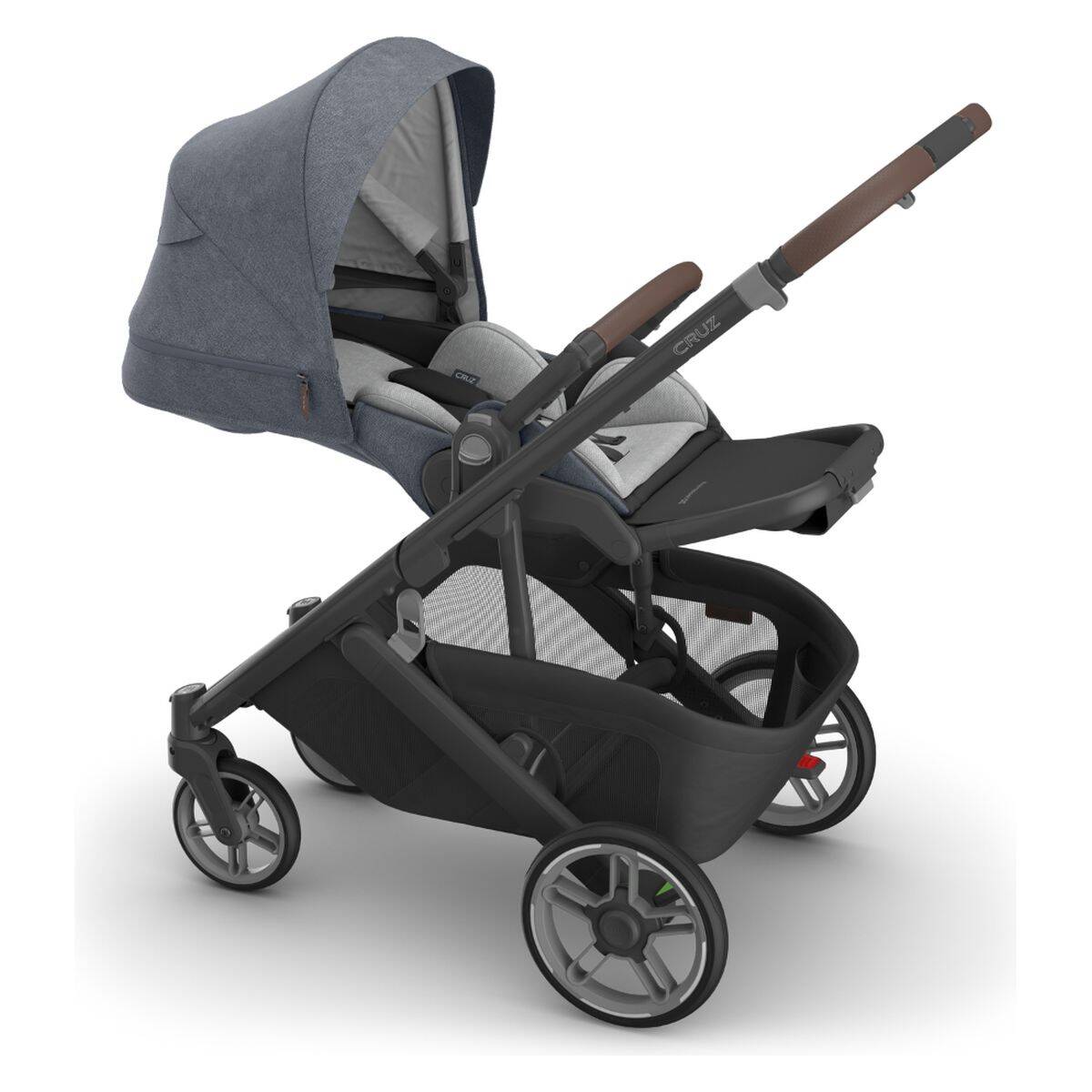 Popolna združljivost in potovalni sistem: Cruz V3 omogoča neposredno pritrditev otroških avtosedežev UPPAbaby Mesa® i-Size in Aria™ – brez adapterjev. Za prevoz dveh otrok je na voljo dodatek PiggyBack za starejšega otroka. Na voljo ločeno.
