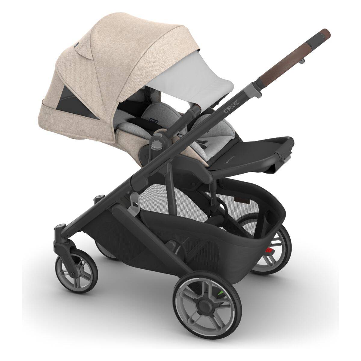 Popolna združljivost in potovalni sistem: Cruz V3 omogoča neposredno pritrditev otroških avtosedežev UPPAbaby Mesa® i-Size in Aria™ – brez adapterjev. Za prevoz dveh otrok je na voljo dodatek PiggyBack za starejšega otroka. Na voljo ločeno.