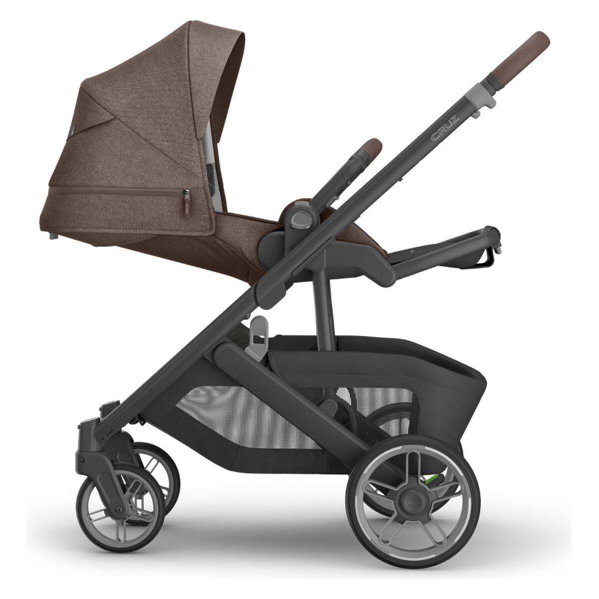 Popolna združljivost in potovalni sistem: Cruz V3 omogoča neposredno pritrditev otroških avtosedežev UPPAbaby Mesa® i-Size in Aria™ – brez adapterjev. Za prevoz dveh otrok je na voljo dodatek PiggyBack za starejšega otroka. Na voljo ločeno.